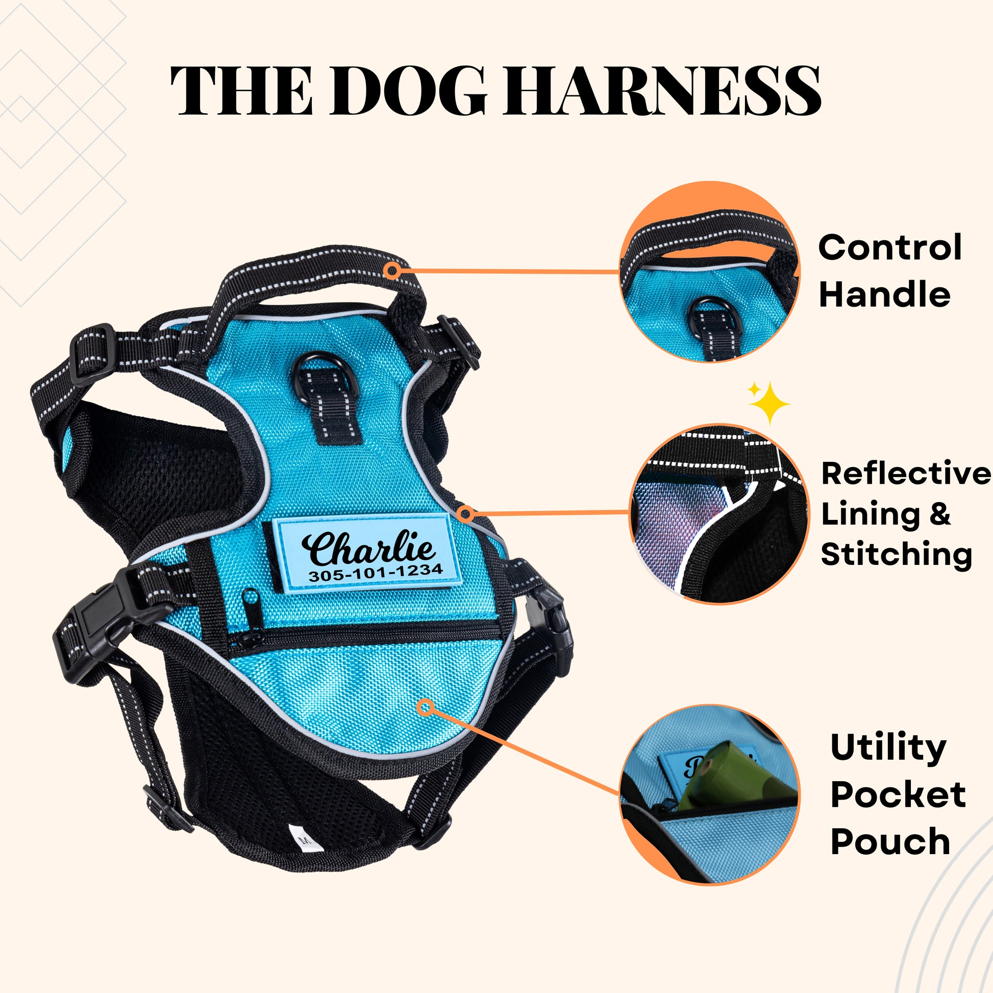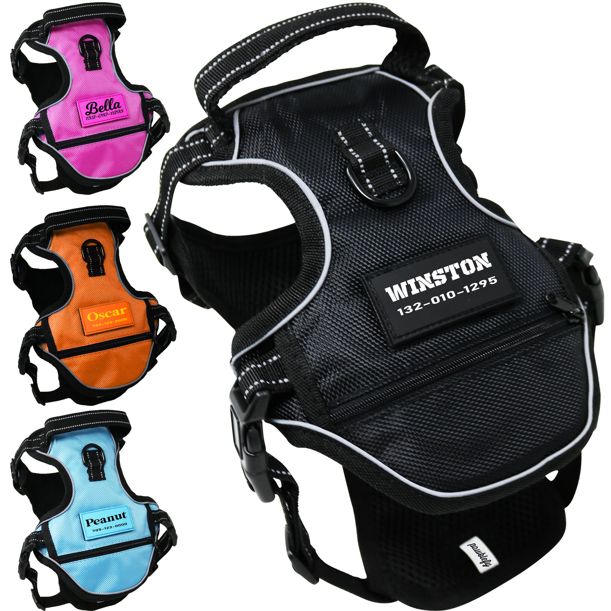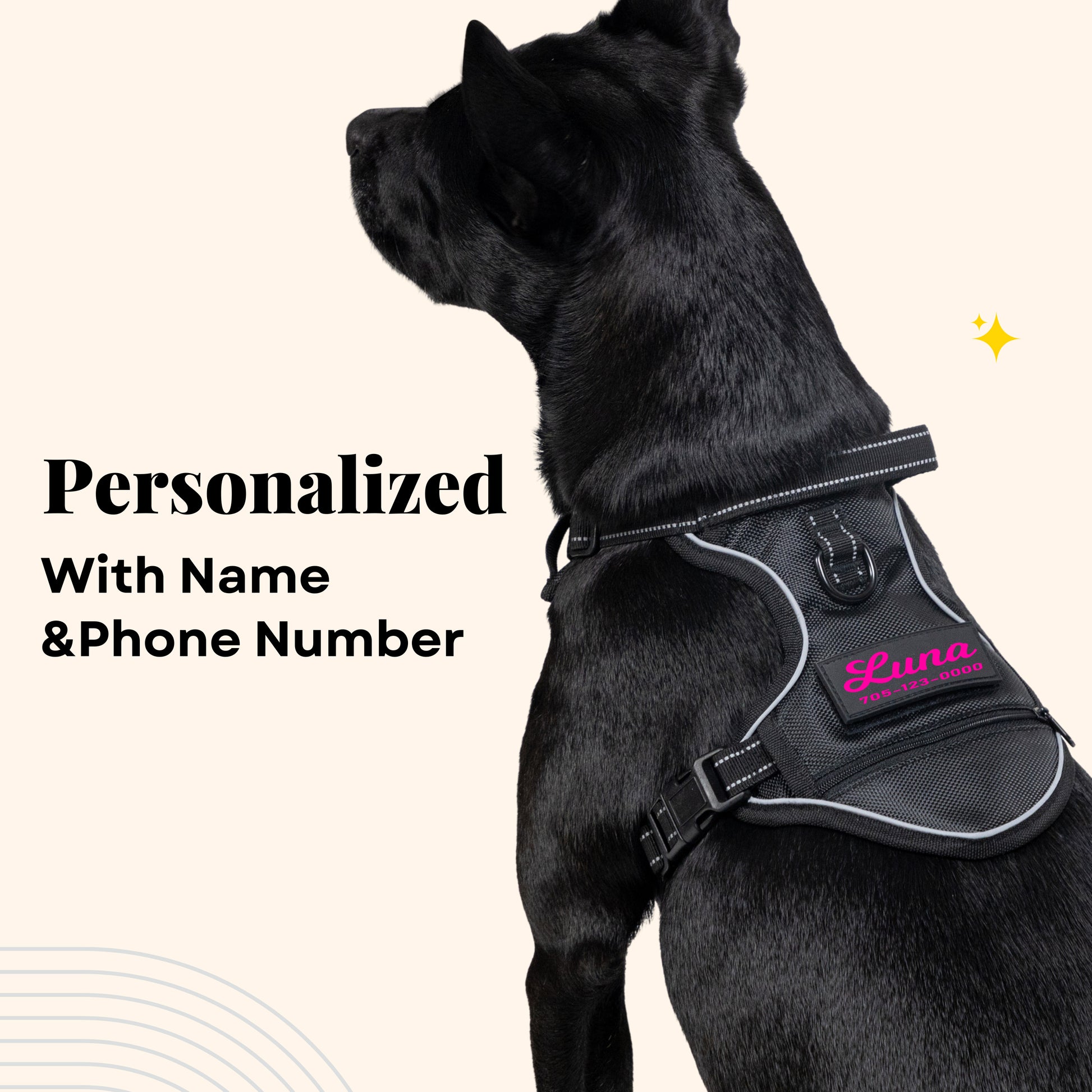 - PERSONALIZED DOG HARNESS- No more dangling dog tags on the collar. Keep your pup identified! This vest harness is a customizable harness with your puppy's name and your phone number.