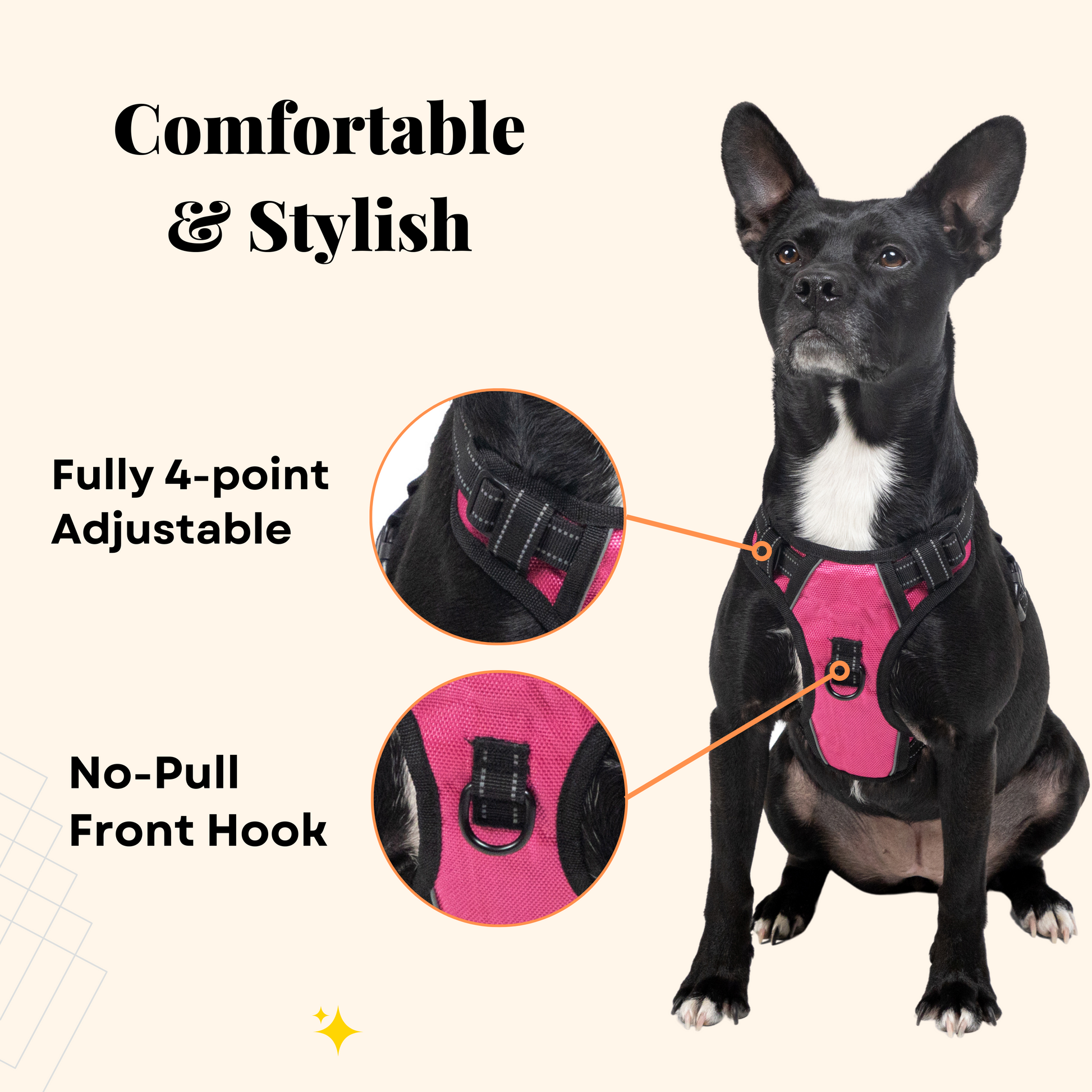 non-pulling dog harness is designed with 2 metal leash rings. The front ring stops your dog from pulling while on walks and during training. The back ring is designed for casual walks and jogs.